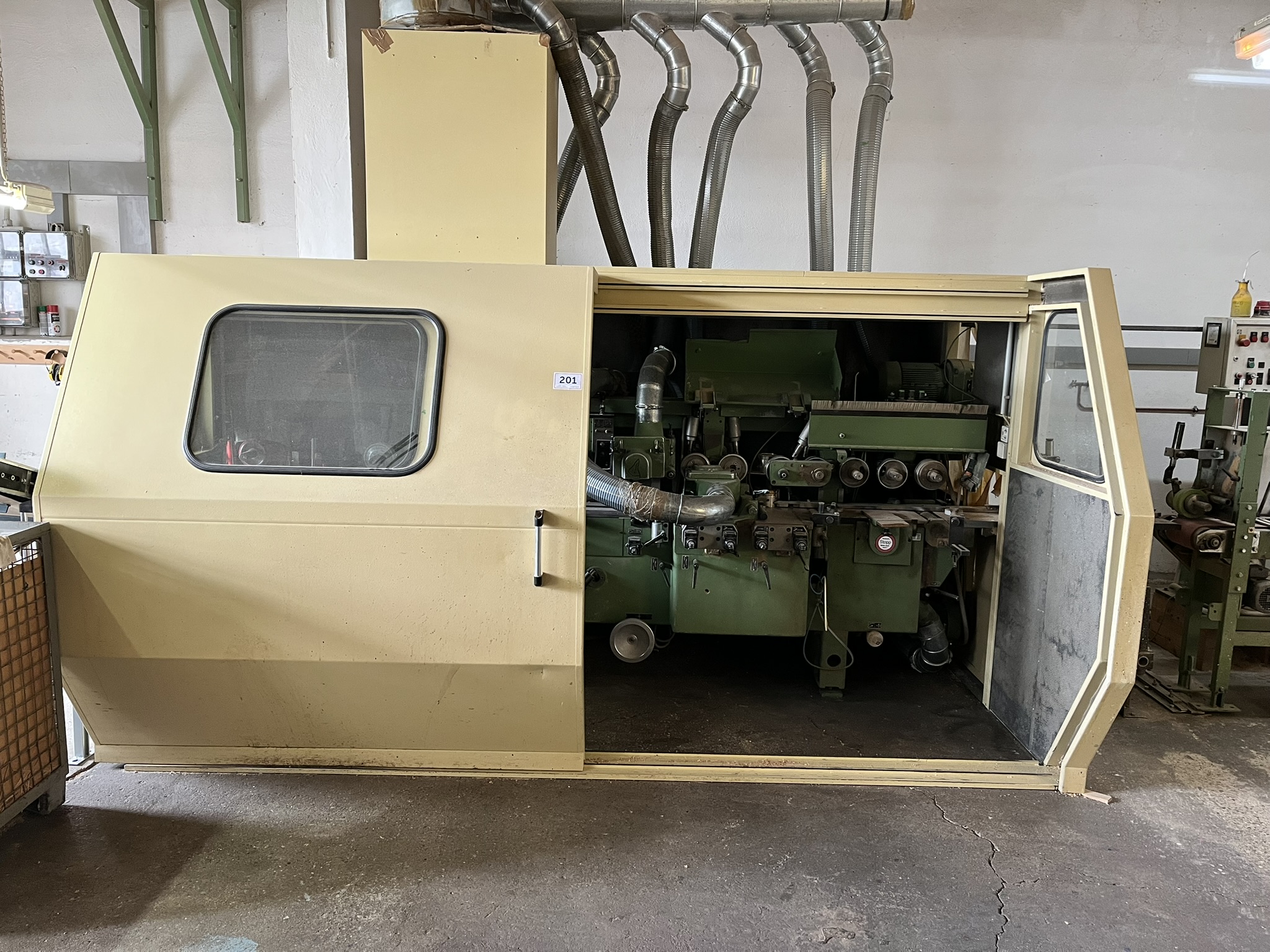 Einkopf-Linearwaage, Vierseitenhobelmaschine, 4-Farben-Tampondruckautomat, Horiz. Beutelverpackungsmaschine, 2-Farben-Tampondruckautomaten, Vielblattkreissäge, Trockenkammer