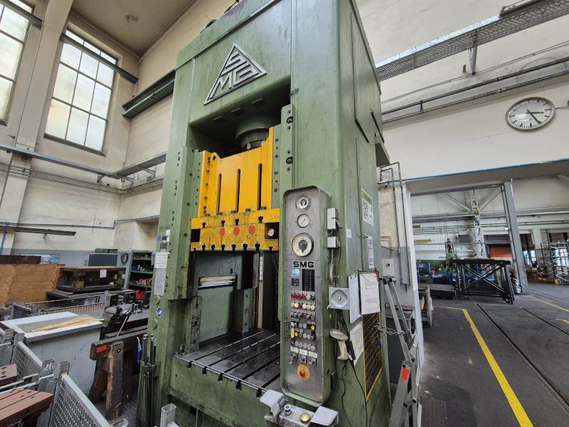 Pos. 191: 1 Doppelständer-Ziehpresse SMG HZPU500- 1250, Bj. 1961, Serien-Nr. 670/1116, Presskraft max. 500 t, Tischgröße 1.510 x 1.250 mm, Stösselhub 800 mm, Einbauhöhe 600 - 1.400 mm, Druck Tisch Ziehkissen 10-125t, Ziehkissenhub 200 mm, Steuerpult, Zubehörschrank, Spannmittel