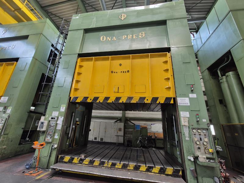 Pos. 244: 1 Tryoutpresse ONA-PRES EBd-100- 4.5-AB, Bj. 1992, Ser.-Nr. P-01126, Presskraft max. 1.000 t, Tischgröße 4.500 x 2.700 mm, Stößelhub 1.400 mm, Einbauhöhe 800 - 2.200 mm, Tisch Ziehkissen 60 - 250 t, Ziehkissenhub 300 mm, Stösselkissenhub 200 mm, Pressensteuerung, Zusatzsteuerung für Stössel, Schrankanlage 2-teilig mit Zubehör
