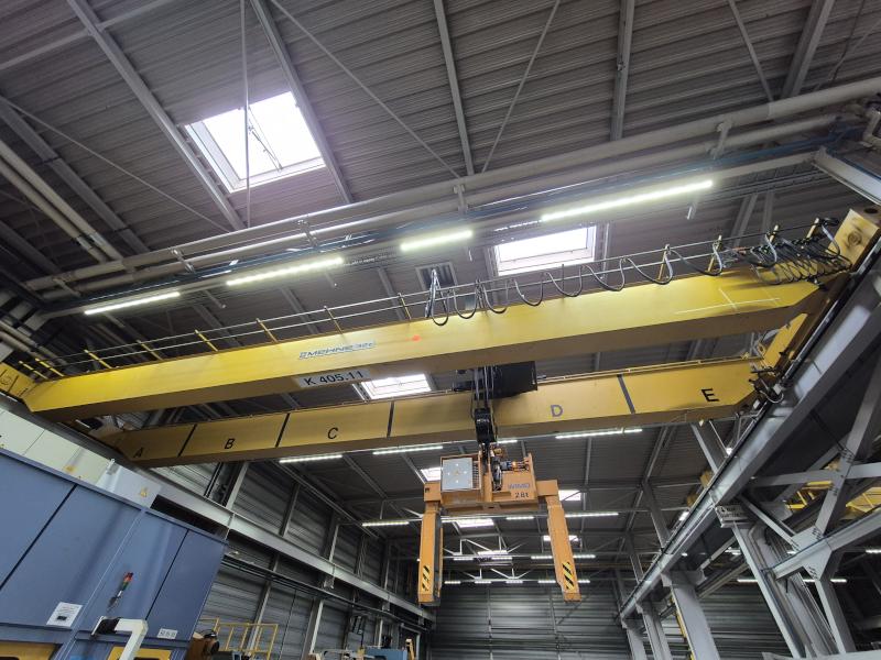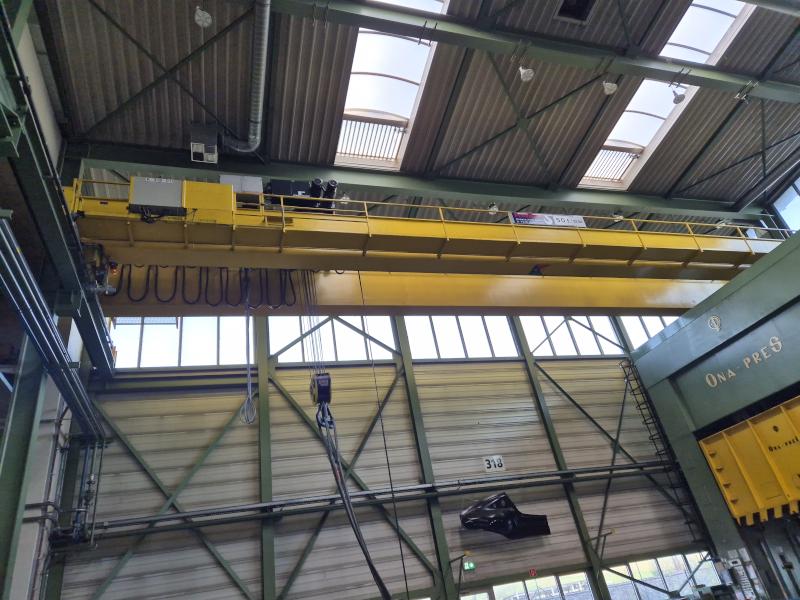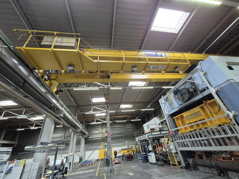Pos. 301: 1 Doppelständer-Ziehpresse HYDRAP HPDZ b 1600, Bj. 1993, Ser.-Nr. 6766, Druck max. 1.600 t (Stössel 1.000 t + Blechhalter 600 t, koppelbar), Schiebetisch, 3.600 x 2.200 mm, Aufspannfläche Stössel 3.600 x 2.200 mm, Stösselhub 1.500 mm, Druck Tischziehkissen 36 - 360 t, Hub Tischziehkissen 450 mm, Pressensteuerung, Bedienpult, schwenkbar - Betriebsstunden Maschine EIN 69.569h Schaltschrank