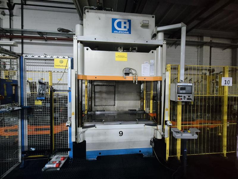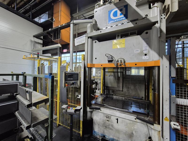 Pos. 276: 1 Bördelpresse HYLATECHNIK HBP80.6.XS4, Bj. 2002, Ser.-Nr. 19980, 4-Säulen, Presskraft 800 kN, Stößelhub 600 mm, Einbauhöhe 1.100 mm, Tischgröße 1.820 x 1.450 mm, hydr. Werkzeugspannung, Pressensteuerung, Operatorpanel, Fabr. Sütron, Typ BT20, Zweihandbedienpult, Sicherheitseinrichtungen