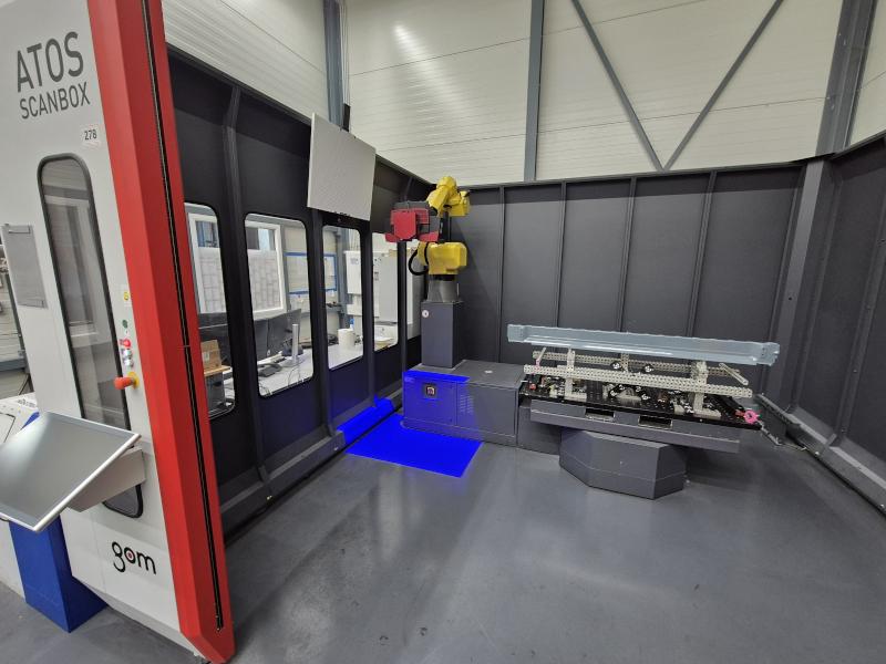 Pos. 278: 1 Digitales Messsystem GOM Atos III Plus, Scanbox, Bj. 2016, Messvolumen 550 x 550 x 550 mm³, best. aus: Messsoftware Atos InSpect 2023, Scankopf ATOS III, Robotermodul Fanuc M20iA, Rundtisch, Aufspannplatte 1.500 x 1.000 mm, Sicherheitslichtschranken, Ausziehregal, 2x 3 Auszüge, Inhalt: Rasterplatten, Lehren. Stative, Werkzeugwagen, Fabr. Atorn, Klimakabine, 10 x 6 x 6 m, Rolltor, Eingangstür, Beleuchtung, Roll-Rüsttisch, Fabr. Witte, Abm. 2.400 x 1.800 x 200 mm, 1 Posten Spannmittel Witte