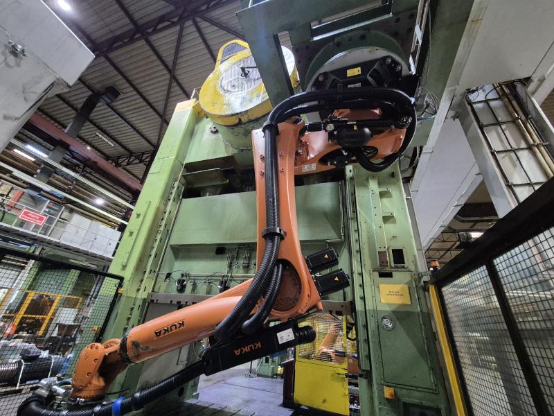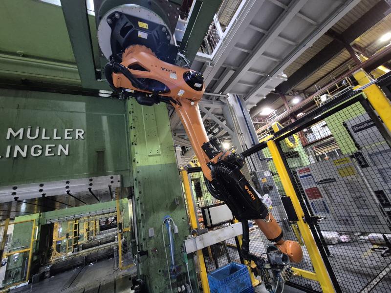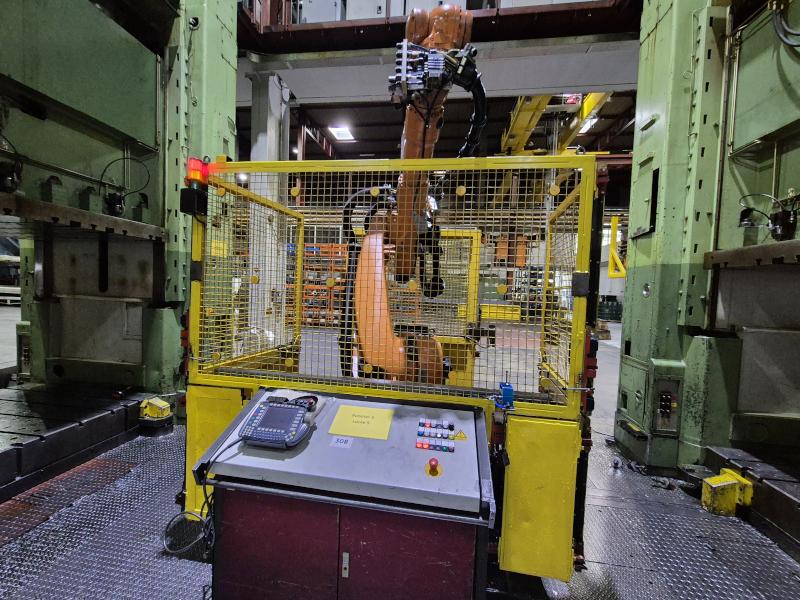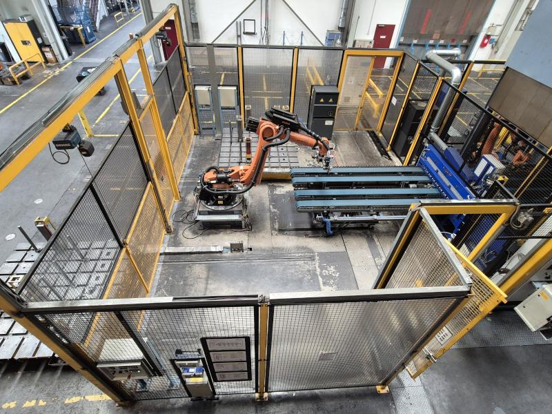 Pos. 370: 1 Platinenlader Platinenabm. min./ max. 265-1.800 x 350-1.800 mm, Lageerkennung, Doppelblechkontrolle, 2 Roboter, Fabr, Kuka, Typ KR100 R3500 press, Bj. 2017, Steuerung KRC4, Handbedienterminal, Beschleunigungsbänder, Waschanlage Wandres EVO, Bj, 2005, Beölstation, Fabr. Raziol FGP 2001, Bj. 2021