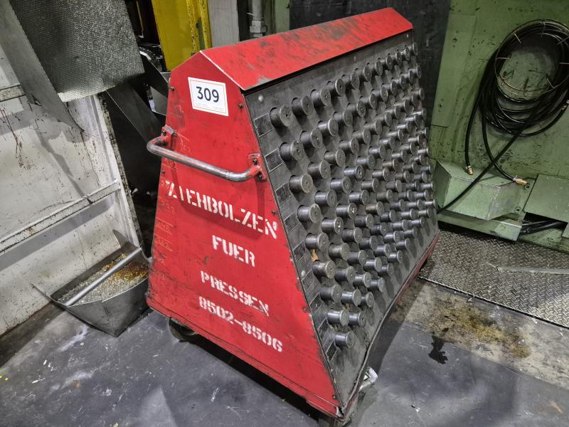 Pos. 196: 1 Doppelständer-Ziehpresse SMG HZPU250, Bj. 1955, Presskraft max. 250 t, Tischgröße 1.230 / 1.100 mm, Stösselhub 640 mm, Einbauhöhe 418 - 1.058 mm, Druck Tisch Ziehkissen 5 - 80 t, Ziehkissenhub 540 mm, Steuepult, Ersatzstössel, Zubehör (3 Schubladenschränke) mit Inhalt
