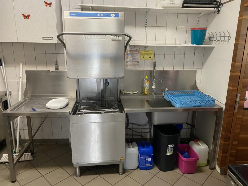 Verkauft 1 Ladeneinrichtung KRAMER LADENBAU, Bj. 2015, best. aus: Verkaufstheke, U-Form, ca. 1.500 x 2.000 x 3.000 mm, Holz natur/grau, Taschenablage, Spuckschutz, innen 2x 2 Kühlzüge für Flaschen, 3 Kühlzüge für Lebensmittel, 2 Kühltheken, grün/Naturholz, B 1.500 mm, 2 Warenauslagetheken, Taschenhalterung, Spuckschutz, ca. 6 lfm. Rückwand, Warenauslageregal, Schrägauslagen, 2 Sideboards, 3 Sitzbänke, U-Form, Massivholz, Alcantharabezug, 4 Tische, Ø 1.000 mm, 12 Stühle, Massivholz, Alcantharabezug, Dekorationen, 11 Tische, Holz, ca. 800 x 800 mm, Hochtisch, 30 Stühle, Holzgestell, Lederbezug, rot, 3 Barhocker, Rückwandschrank, Küchentheke, Abstelltheke, Kochinsel, integr. Infrarotherd, Fabr. Siemens, Dunstabzugshaube, Fabr. Siemens, Rückschrank, integr. Herd, Fabr. Siemens, ca. 3.000 mm, Rückwand/Umbau U-Form, integr. Kühlung, ca. 2.000 x 5.000 x 2.000 mm, 2 Kühlungen, á 2 Auszüge, Ladenkasse Fab. Sharp, 2 Tablettwagen Fab. Scholl, Salamander, Mikrowelle, 4 Einwurftresore