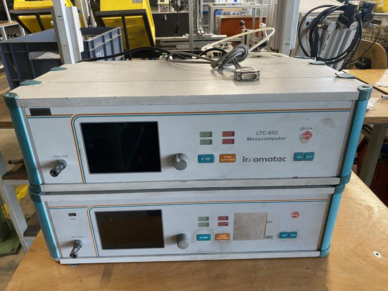 Pos. 384: 3 Leck-Messcomputer INNOMATEC LTC 602, Prüfdruckbereich frei programmierbar, 2 Prüfkanäle, elektr. Präzisionsdruckregler, 5,5" TFT-Display, Montagetisch aus Alu-Systemprofilen, Oberlicht, Etikettierstation ***Standort dieser Position ist in Tschechien***