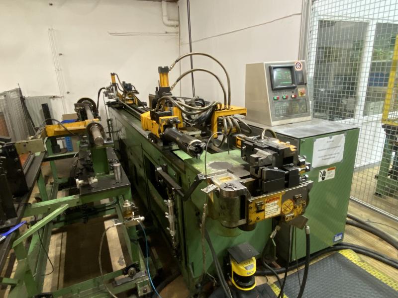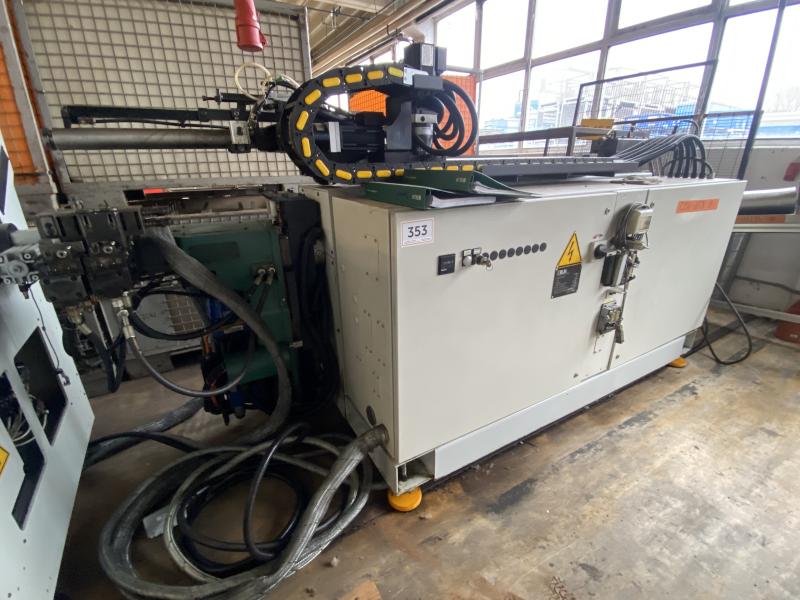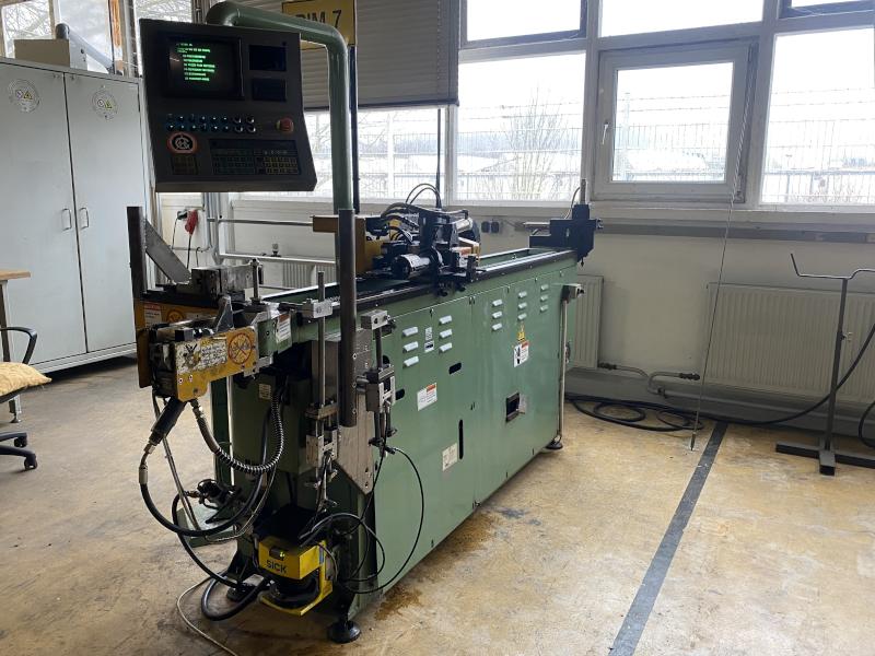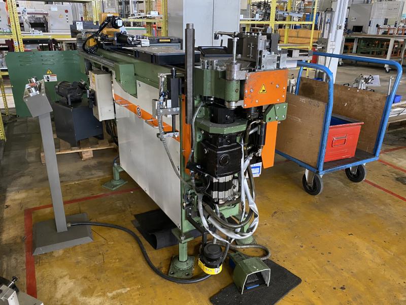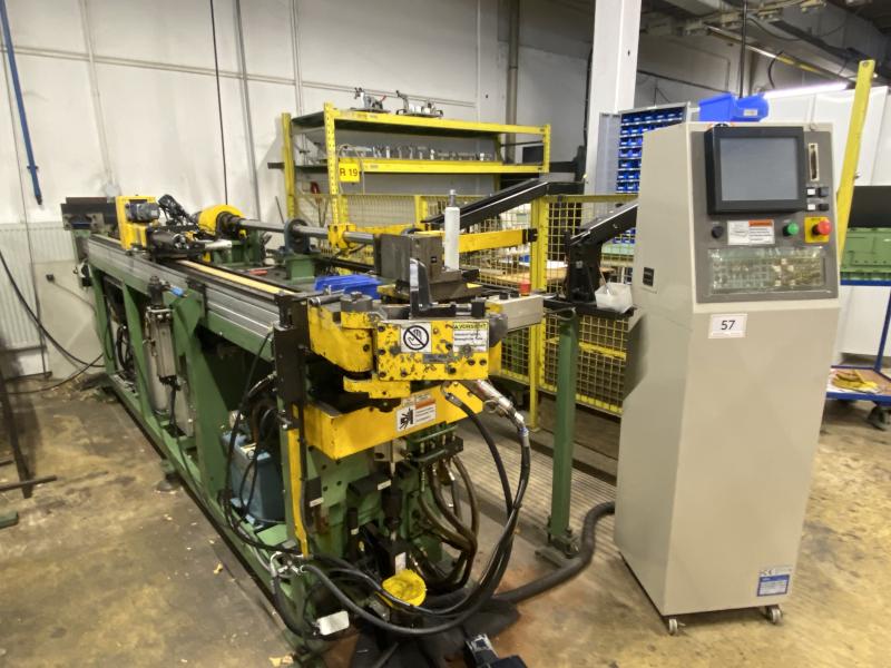 Pos. 61: 1 CNC-Dornbiegemaschine MIIC 10RS, Bj. 1992, Ser.-Nr. BO112E, Dornlänge ca. 1.000 mm, Spannzangenkopf verfahrbar in X/Z, Biegekopf rechts, Schalt-/Steuerschrank, Bedienpult, Fuß- Zweihandbedienung, Werkbank, 2.000 x 750 mm, Schraubstock, Prüfvorrichtung mit Rolltisch, Funktion ungewiss, Ersatzteilträger