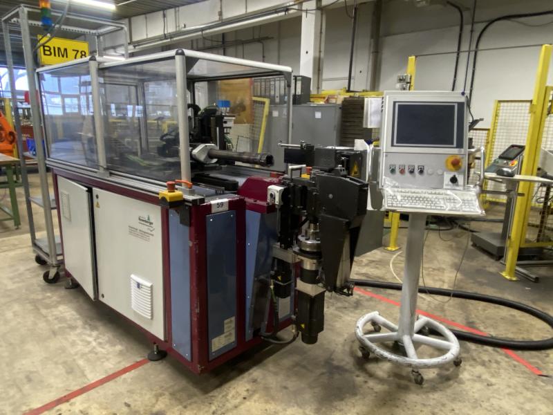 Pos. 59: 1 CNC-Rohrbiegemaschine ROSENBERGER RB20, Bj. 2010, Ma.-Nr. M815, servoelektrisch, CNC Biegekopf, Biegeleistung Ø 20 x 1,5 mm (Stahl), Biegeebenen beliebig innerhalb 78 mm Werkzeuggesamthöhe, Verfahrweg X/Y/Z 260 x 146 x 1.170 mm, Spannzangenkopf mit Vorschubschlitten, SPS Steuerung Siemens S7-300, Display B & A, Sicherheitseinrichtungen, Statusleuchte, Werkbank mit Oberlicht