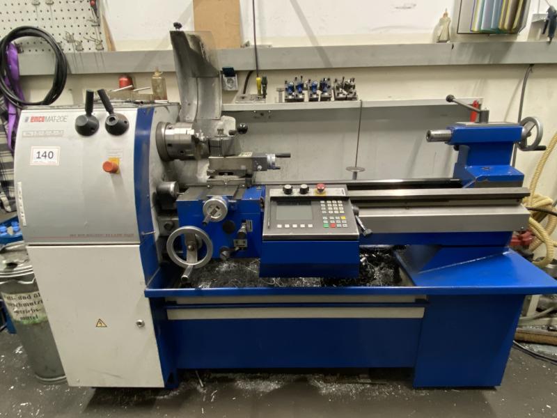 Pos. 140: 1 Zyklendrehmaschine EMCO EMCOMAT-20, Bj. 1999, Ser.-Nr. MS004, Steuerung, Spitzenhöhe/-weite 200 x 1.000 mm, Drehzahl max. 3.000 U/min, Dreibackenfutter, Reitstock, Schnellwechselstahlhalter System Multifix, 1 Posten Stahlhalterkassetten