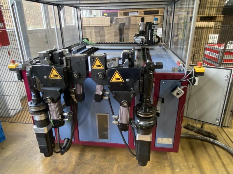 Pos. 345: 1 Hydr. Rohrumformmaschine BLM AST38-6P, Bj. 2004, Ser.-Nr. 910256, Rohr-Ø max. 38 mm, 6 Bearbeitungsstationen (Revolver) horizontal, Werkstückzuführung mit Vibrationsfördertopf und Vereinzelung, Stegförderband, Reinigungsanlage, Fabr. Bous, Typ Rowamat RL1000HK, Bj. 2004, Ser.-Nr. 19575, Nutzraum Ø 8 - 25 x 100 - 1.000 mm, Schalt-/Steuerpult, Stegförderband und Inspektionsanlage mit 2 Kameraeinheiten, Fabr. Nais, Linearportal, Austragung, 4 Produktstränge, Steuerung mit Operator Panel touch, Peripherieaggregate, Auffangwannen, Zubehör, Zubehörschränke, Bereitstellungsregale