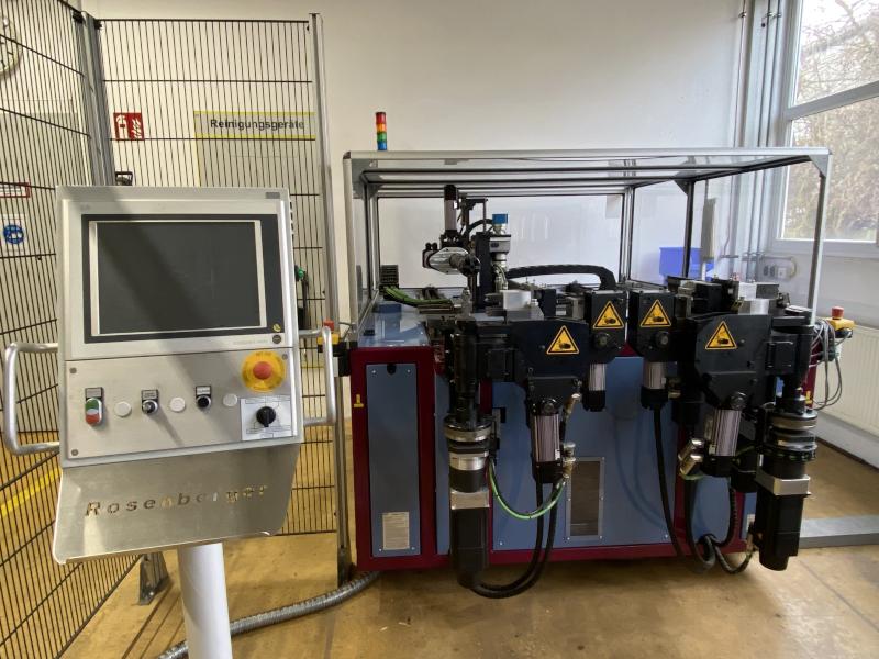 Pos. 42: 1 Rohrumformmaschine ROSENBERGER RU 18-8, Bj. 2015, Ser.-Nr. M1391, Steuerung mit Operator Panel, Fabr. B & A, Umformkraft 180 kN, Verfahrweg 220 mm, 6-fach Werkzeugwechseler, Minimalmengenschmierung, Schalt/Steuerschrank