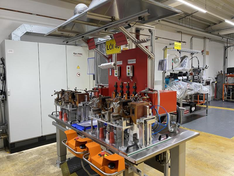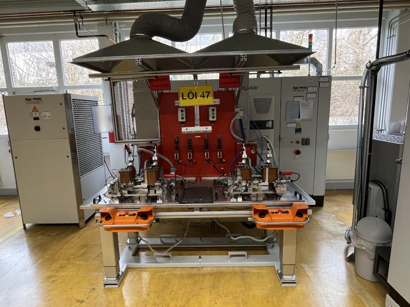 Pos. 230: 1 Induktions-Lötanlage AJAX TOCCO 16/10740, Bj. 2017, 2 Stationen, SPS-Anlagensteuerung mit Operator Panel touch, Generatorleistung 38 kW, Ausgangsfrequenz 10.000 - 40.000 Hz, Kühlaggregat, Fabr. Jachel, Absaughaube, Zweihandbedienung, Lötvorrichtungen, Nacharbeitstisch, B 2.000 mm, Oberlicht, Lupenlampe, Handscanner Fabr. Zebra, Typ Omni XT15