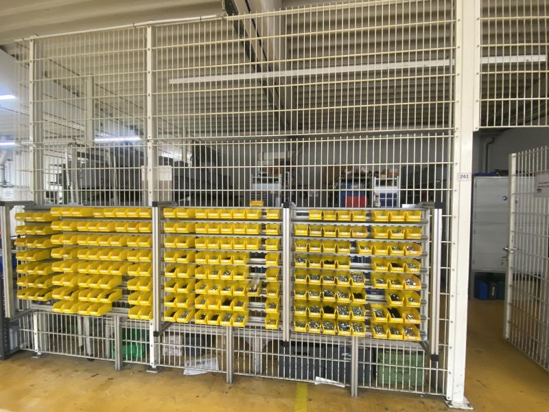 Pos. 261: 1 Ersatzteillager im wesentl. best. aus: 11 Schubladenschränke, B/T/H 350-750 x 500-600 x 720-900 mm, 6-7 Auszüge, 1 Kragarmregal, 5 lfm., 6 Ständer, 4 Ebenen, Gesamthöhe ca. 2.000 mm, 1 Kleinteilmagazin, 4 drehbar,1 Steckregal, 11 Elemente B/T/H 1.000 x 600 x 2.000 mm, 6 - 10 Ebenen, 1 Gefahrstoffauffangwanne, Fabr. Bauer, Typ 30214E, BJ 2021, 200 l Auffangvolumen, 4 Stahlschränke, B/T/H 1.000 x 600 x 1.950 mm, 2-türig, 2 Werkzeugschränke 2-türig Inhalt: Posten elektr. Handmaschinen, Schleifbänder, Fräser, Verschraubung Pneumatikteile, Kniehebelspanner, Schläuche, DIN Teile, allg. Verbrauchsmaterial