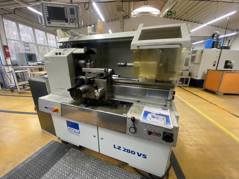 Pos. 276: 1 Zyklendrehmaschine GDW LZ280VS Comfortline, Bj. 2010, Ma.-Nr. 007, Digitalanzeige Comfortline, 9" Display, Spitzenhöhe/-weite 165 x 670 mm, Drehzahl max. 5.000 U/min, Dreibackenfutter, Fabr. RÖHM, Ø 160 mm, Reitstock, Schnellwechselstahlhalter, Stahlschrank, 1-türig, 500 x 500 x 1.000 mm