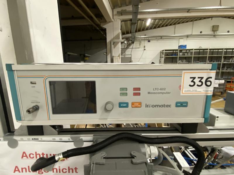 Pos. 336: 1 Leck-Messcomputer INNOMATEC LTC-602, Bj. 2011, Prüfdruckbereich frei programmierbar, 2 Prüfkanäle, elektr. Präzisionsdruckregler, 5,5" TFT-Display, 3 Montagetische aus Alu-Systemprofilen, Oberlicht, Etikettendrucker, Fabr. CAB, Typ Squix
