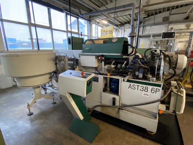 Pos. 37: 1 Hydr. Rohrumformmaschine BLM AST38/6P, Bj. 1998, horizontal, Ser.-Nr. 906176, Rohr-Ø max. 38 mm, 6 Bearbeitungsstationen (Revolver), Schalt-/Steuerschrank