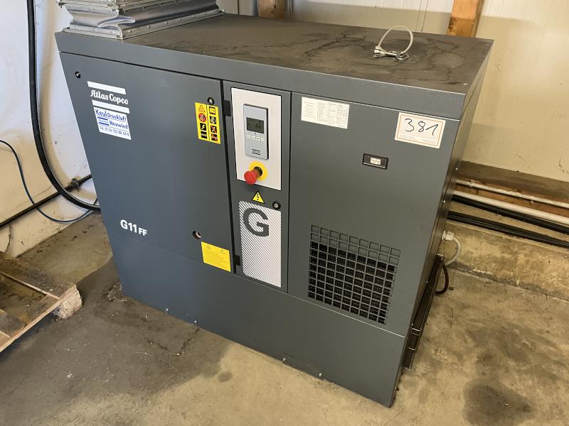 Pos. 381: 1 Schraubenkompressor ATLAS COPCO G11FF, Bj. 2019, elektr. Leistung 11 KW, Druck max. 9,5 bar, integr. Trockner, Kompressorsteuerung Betr. Std. ca. 6.900 h *** Standort dieser Position: *** Hoptec GmbH Auf dem Kessling 2 56414 Niederahr