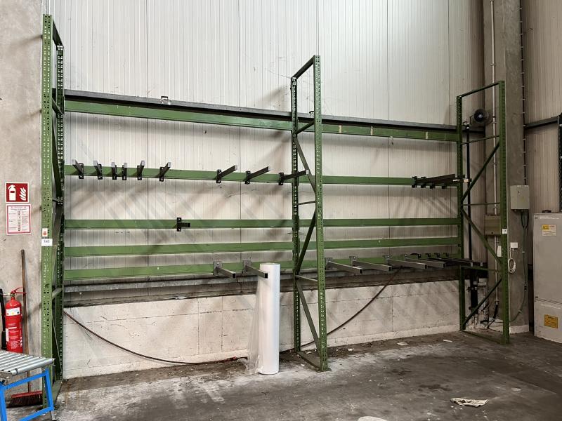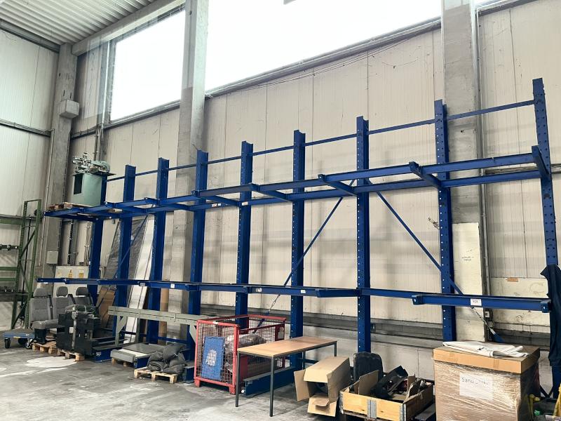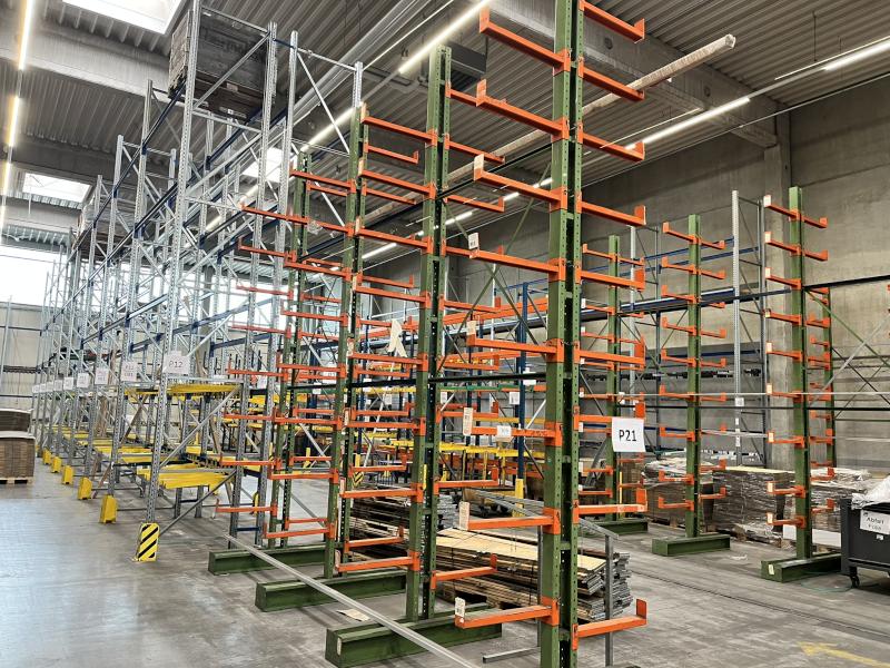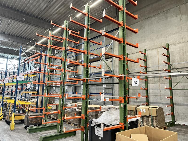Verkauft 1 Kragarmregal FISCHER, Bj. 2013, best. aus: 5 Kragarmständer, Kragarmlänge 1.000 mm, 5 Ebenen, Regalhöhe ca. 6.000 mm, Kragarmlast 300 kg, Ständerlast 1.800 kg, blau/orange, inkl. 1 Posten Kragarmständer ca. 14 Stk., 1 Posten Verstrebung, nächste Prüfung 7/26, ohne Inhalt