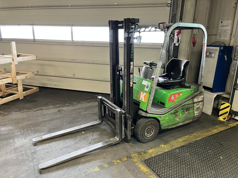Lot 681: 1 Three-wheel Electric Forklift Truck JUNGHEINRICH EFG 115, YOM 2011, Serial no. FN416485, max. load capacity 1,500 kg, duplex mast, max. lift height 3,000 mm, charger, operating hours 6,557