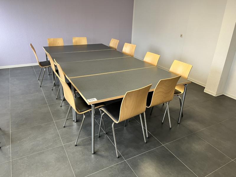 Lot 617: 1 Crosscut and Mitre Saw GRAULE 135 - 510, YOM 1995, Serial no. 5/18, saw blade Ø 350 mm, digital length stop, manufactured by Hecht, type Exenso Comfort, year of manufacture 2014, serial no. 03/40559/1114, adjustable length 6,000 mm, touch display, discharge roller conveyor, L 4,000 mm, 1 set of saw blades approx. 7 pcs., various designs