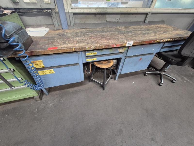 2.000 x 750 mm, Schraubstock, Unterschrank 4 Schubfächer, 1 Türelement, 1 Schubladenschrank B 700 mm, 7 Auszüge