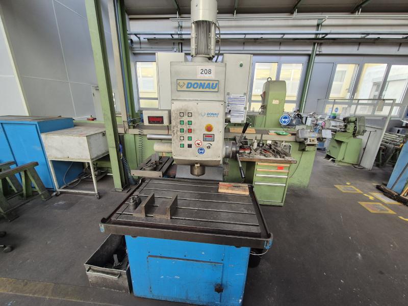 DONAU DanuFlex 145, Bj. 2000, Ser.-Nr. 140198, Drehzahl max. 2.800 U/min, Vorschub max. 0,69 U/min., Tischgröße 900 x 450 mm, Schubladenschrank, 4 Auszüge, Inhalt: Spannmittel, Bohrfutter, Maschinentischspanner