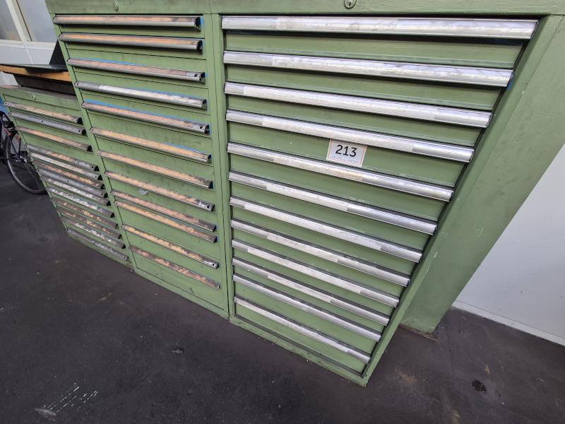 LISTA, B 720 mm, 12-13 Auszüge, Inhalt: Handwerkszeug, Zubehör: Bohrhülsen, Glätteisen, Reibahlen u.a.m.