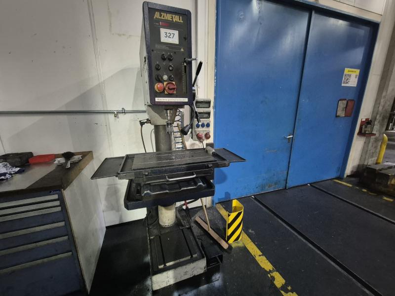 ALZMETALL AB36 SV, Bj. 2001, Ser.-Nr. 866, Drehzahl max. 4.000 U/min, Drehzahlanzeige, digital, Pinolenweg 160 mm, Vorschub max. 0,3 mm/U, Schnellspannbohrfutter, Kreuztisch, Schubladenschrank B 700 mm, 6 Auszüge, Inhalt; Bohrer, Spannmittel
