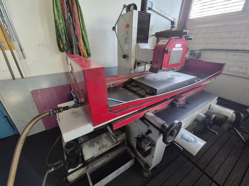 DEGEN FS-S4080, Bj. 2000, Ma.-Nr. 157, Magnetaufspannplatte 800 x 400 mm, Steuerung, Bedienpult, schwenkbar, Kühlmittelanlage, Bandfilter, Geradenabrichtapparat, 2 Schleifscheiben mit Aufnahmeflansch