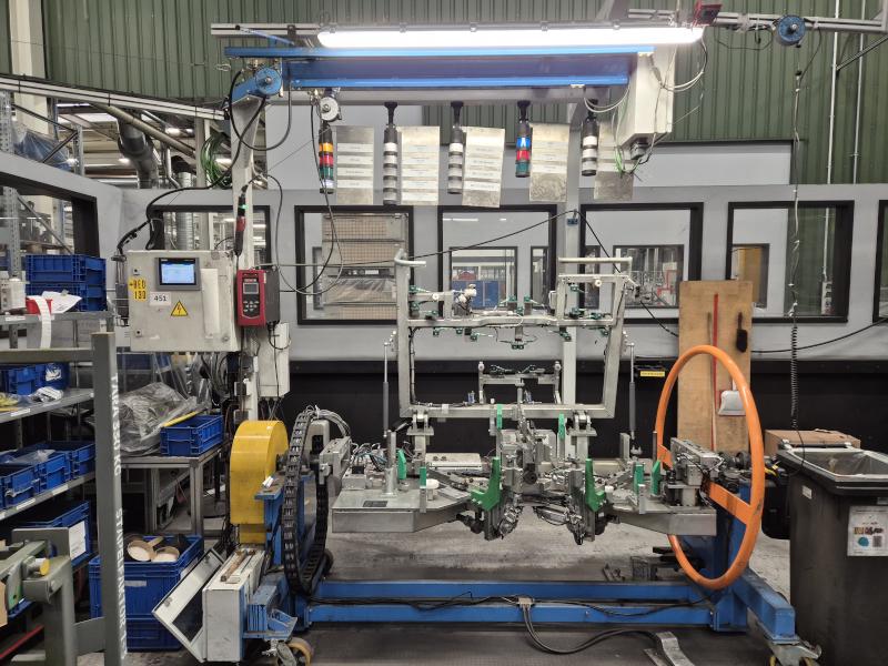 2 Montagepositionierer, B 1.500 mm, 2 Handlingssysteme, Fabr. Dalmec, QC-Prüfzange, Drehmomentschrauber, Fabr. Desoutter, Anlagensteuerung, Fabr. Siemens, Typ Simatic HMI Touch, Bereitstellungs- und Ablageregale, Federzüge, Zubehör