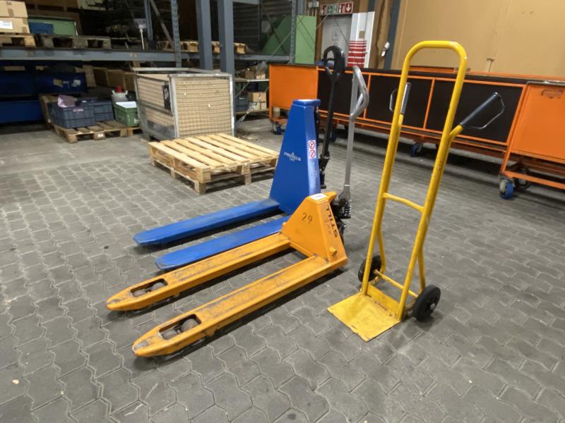best. aus: 1 Gabelhubwagen Fabr. Still, Typ HPT25, Tragfähigkeit 2.500 kg, Bj. 2021, 1 Scherenhubwagen, Fabr Proteus, Tragfähigkeit 1.000 kg, 1 Sackkarre