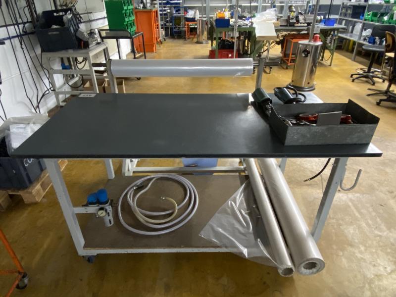 B/T ca. 1.600 x 800 mm, 2 Blindnietzangen, 1 Posten Handarbeitszeug, Folienabrollgestell