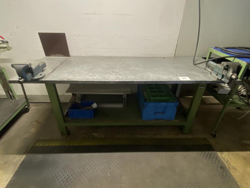 B/T 2.000 x 900 mm, Blechauflage, 2 Schraubstöcke